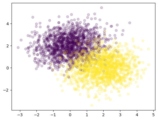 plt.scatter(X[:, 0], X[:, 1], c = y[:, 0], alpha = .2)