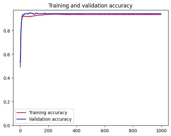 plt.plot(epochs, accuracy, 'r', label='Training accuracy')