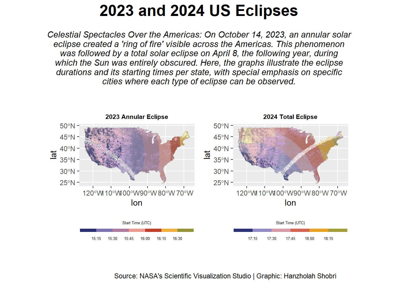 }Using this function, we generate separate plots for each eclipse year. These plots are then combined into a single visual output, adding a unified title, subtitles, and annotations that describe the dataset and the sources of our data.